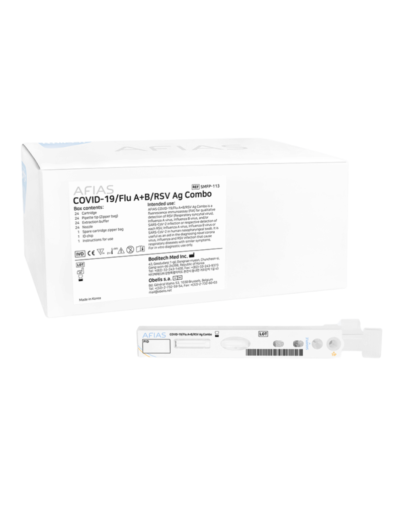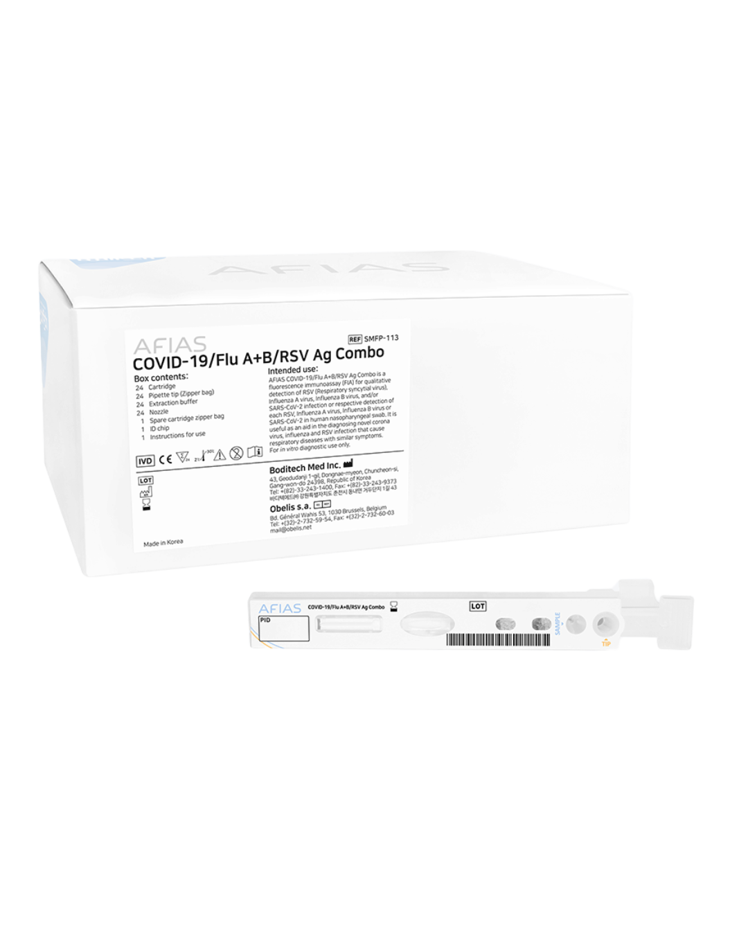 O AFIAS COVID-19/Flu A+B/RSV Ag Combo é um imunoensaio fluorescente (FIA) automatizado para determinação qualitativa da infecção por RSV (Vírus sincicial respiratório), vírus da Influenza A, vírus da Influenza B e/ou vírus SARS-CoV-2 ou respectiva detecção de cada um destes vírus em swab nasofaríngeo humano. Este teste é útil como auxílio no diagnóstico de infecções por corona vírus, influenza e RSV, que causam doenças respiratórias com sintomas similares.